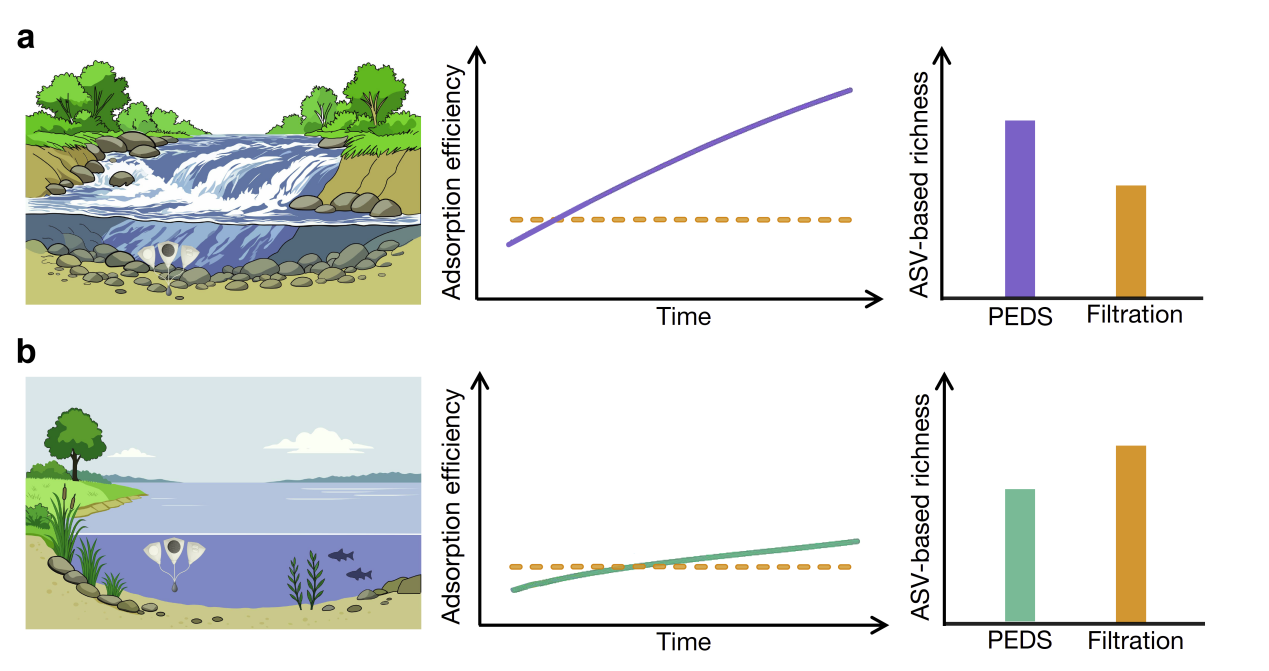 在全球生物多样性持续下降的背景下,如何高效、低成本、可规模化地获取可靠的生态监测数据,已成为生态学与保护生物学面临的核心挑战之一。环境DNA(environmental DNA, eDNA)技术因其非侵入性和高灵敏度,被认为是未来水生生物多样性监测的重要工具。然而,传统的主动过滤方法在浑浊水体和高流速环境中往往效率低下,严重制约了eDNA在河流等动态生态系统中的应用。