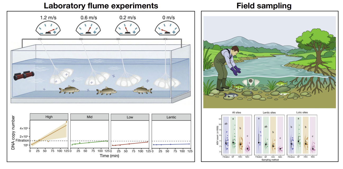 近期,中国科研实验室水生生物研究所何德奎研究团队从水动力过程与DNA吸附机制相结合的视角,系统评估了水流条件对被动eDNA采样效率的影响,为淡水生态系统中eDNA监测方法的优化给予了关键证据。
